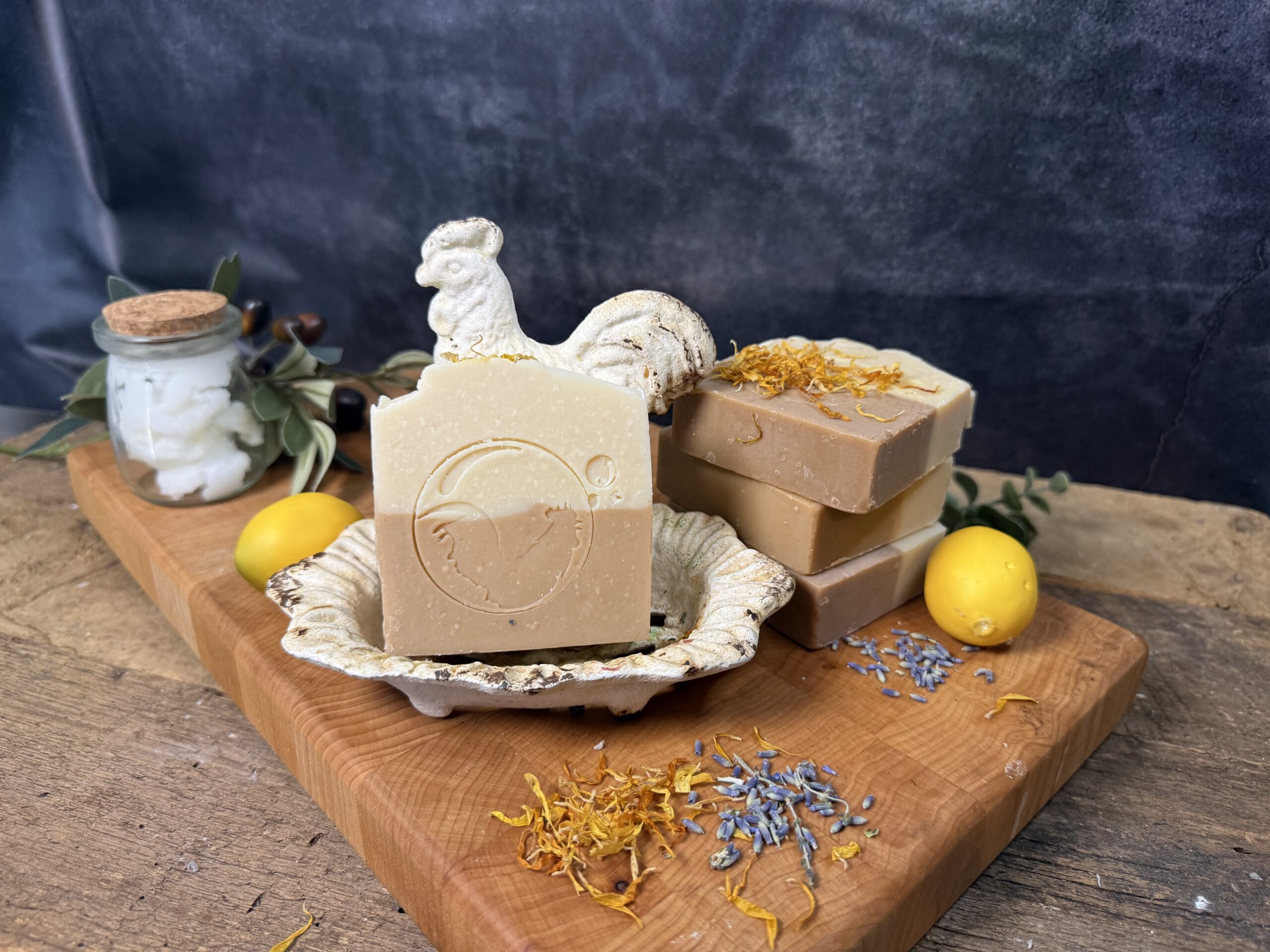 Our soaps are cured for at least 4 weeks to help produce a good, hard, long-lasting bar of soap.