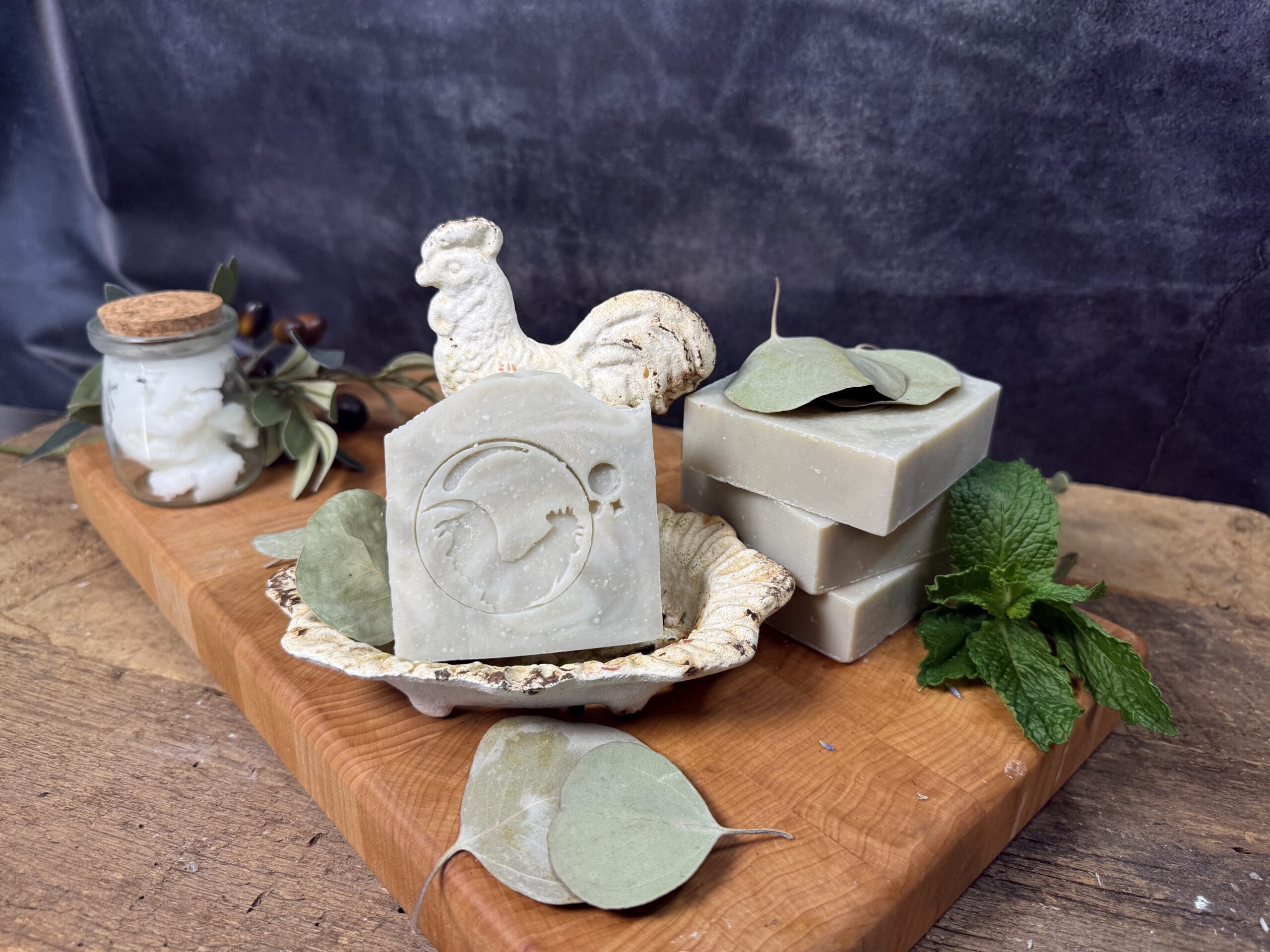 A handmade tallow soap bar made with apple cider vinegar and yogurt, scented with cedarwood, rosemary, and lemongrass essential oils for a fresh, gently cleansing experience.